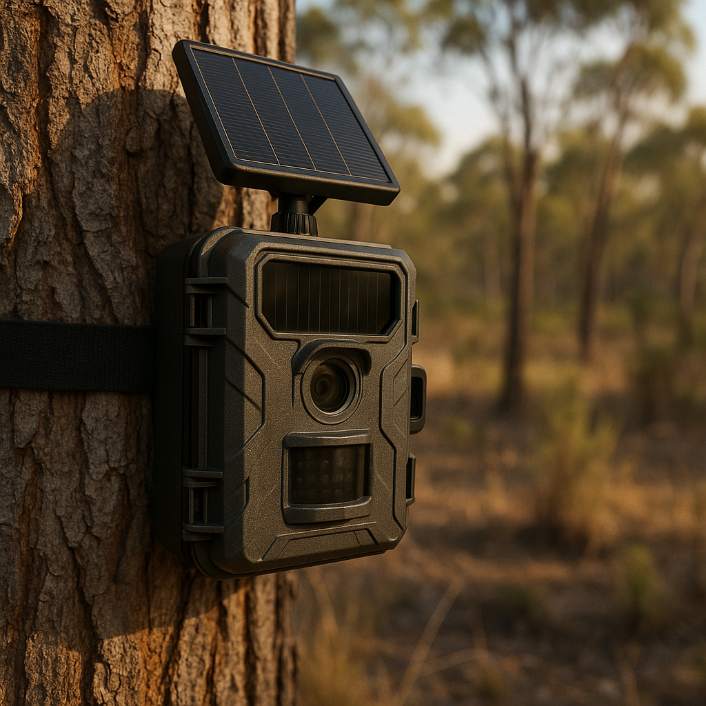 Solar + battery edge cameras with on-device animal classification (target vs non-target), designed for deterrent systems and low-power reporting.